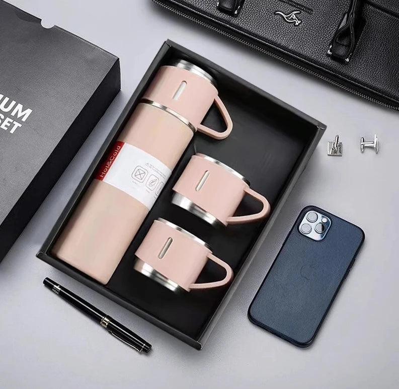 ✔ Kit completo – garrafa térmica de 500ml acompanhada de xícaras práticas e elegantes.